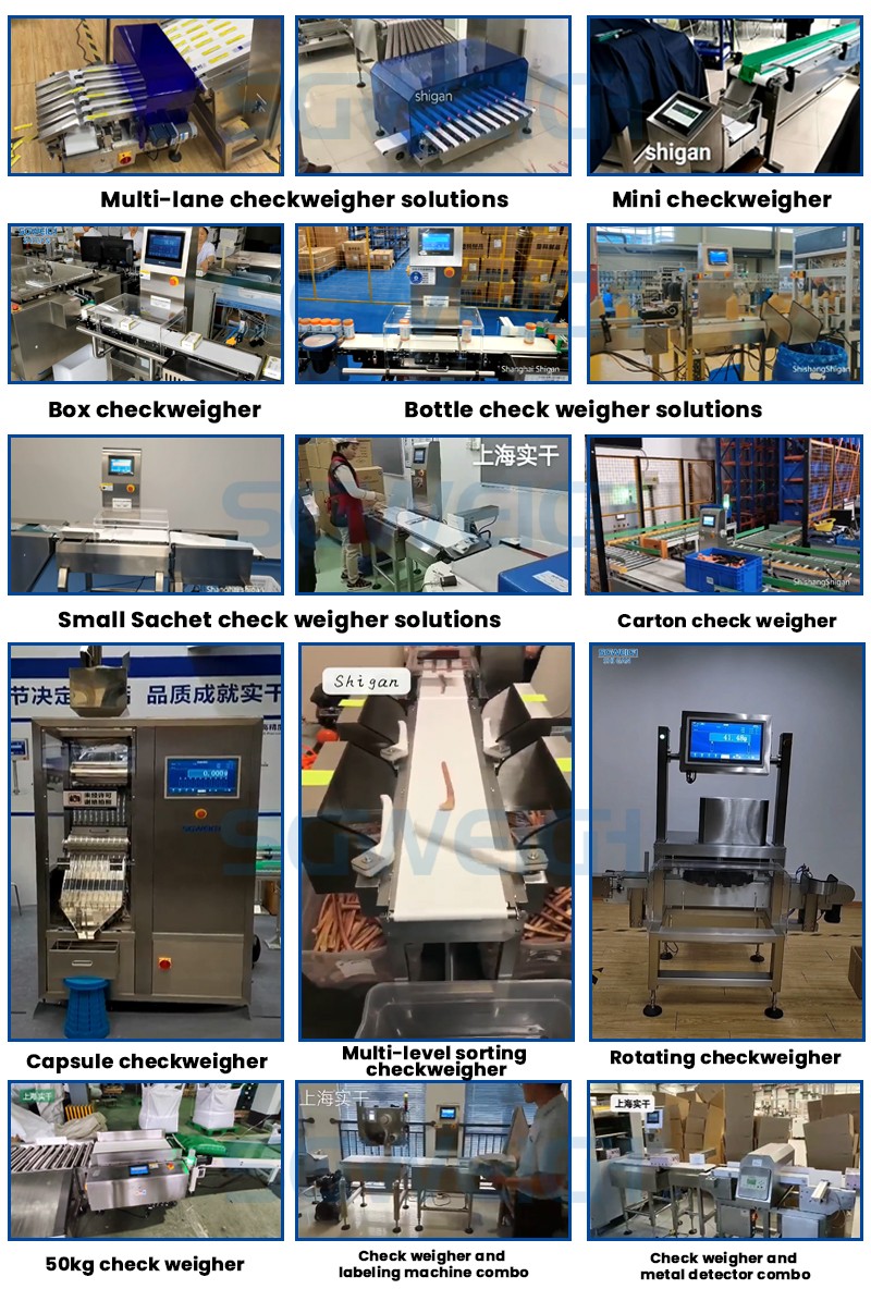 Shanghai Shigan provides multi-level weight sorting machine for food solutions, with a full range of dynamic multi-level weight sorting checkweigher specifications and full-featured customization services. Multi-level weight sorting checkweighers can replace manual sorting, achieving intelligent, standardized, and automated weighing and sorting of different weight levels.